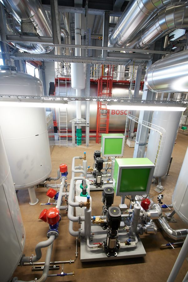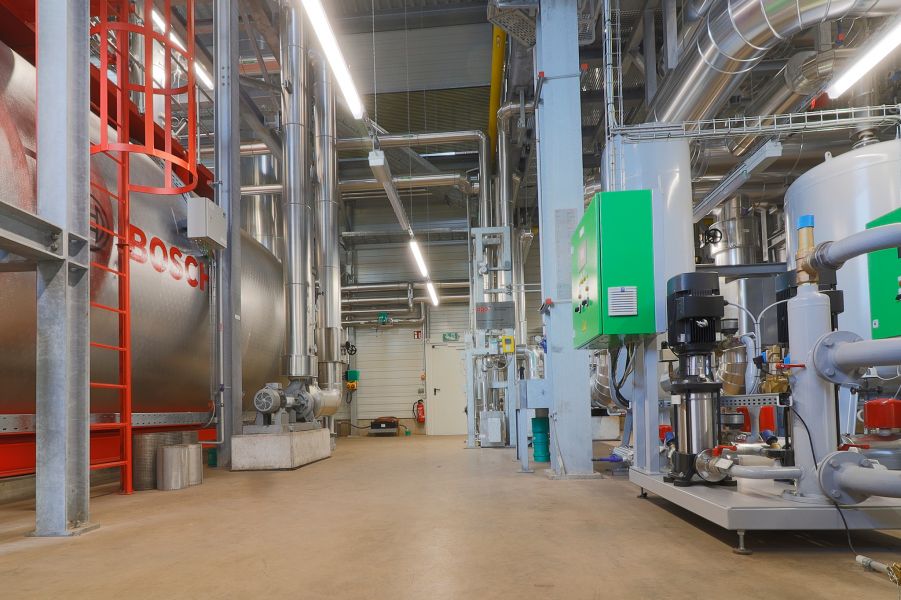 On the grounds of the Dillinger Hütte in Saarlouis, STEAG New Energies built a new heating plant to cover peak load requirements of the FVS district heating system. AGO GmbH installed two hot water boilers with a rated heat output of 20.4 MW each with the associated boiler control and plant engineering.