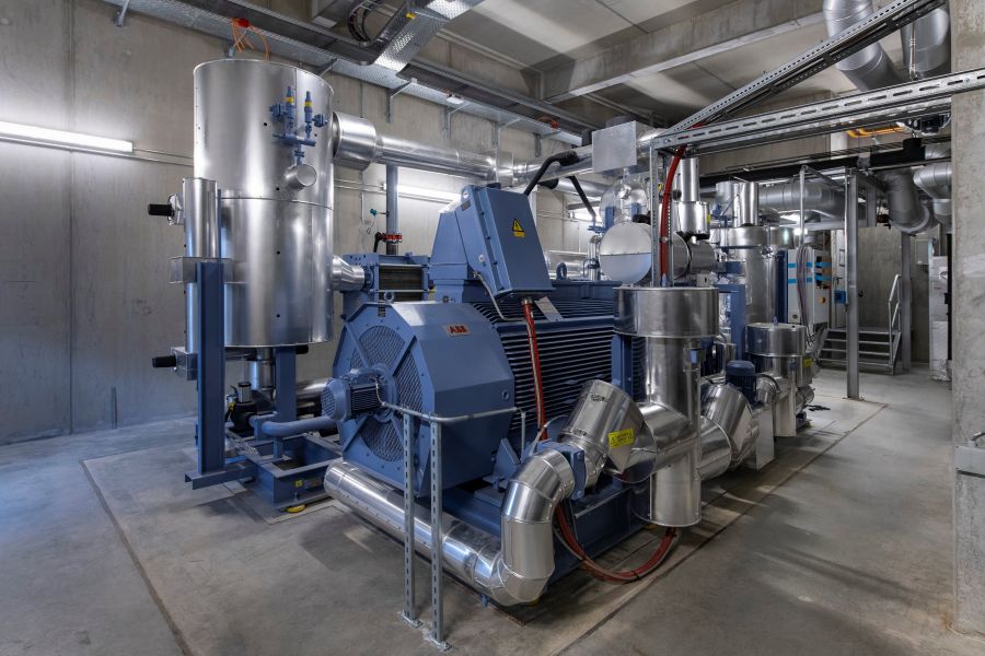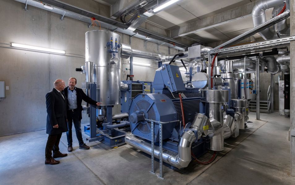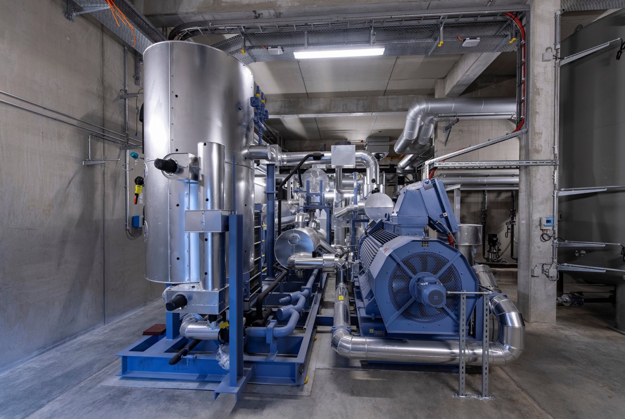 Installation einer Kompressionswärmepumpe zur Erzeugung von Wärme für das Fernwärmenetz Erding durch Nutzung des Thermalwassers.